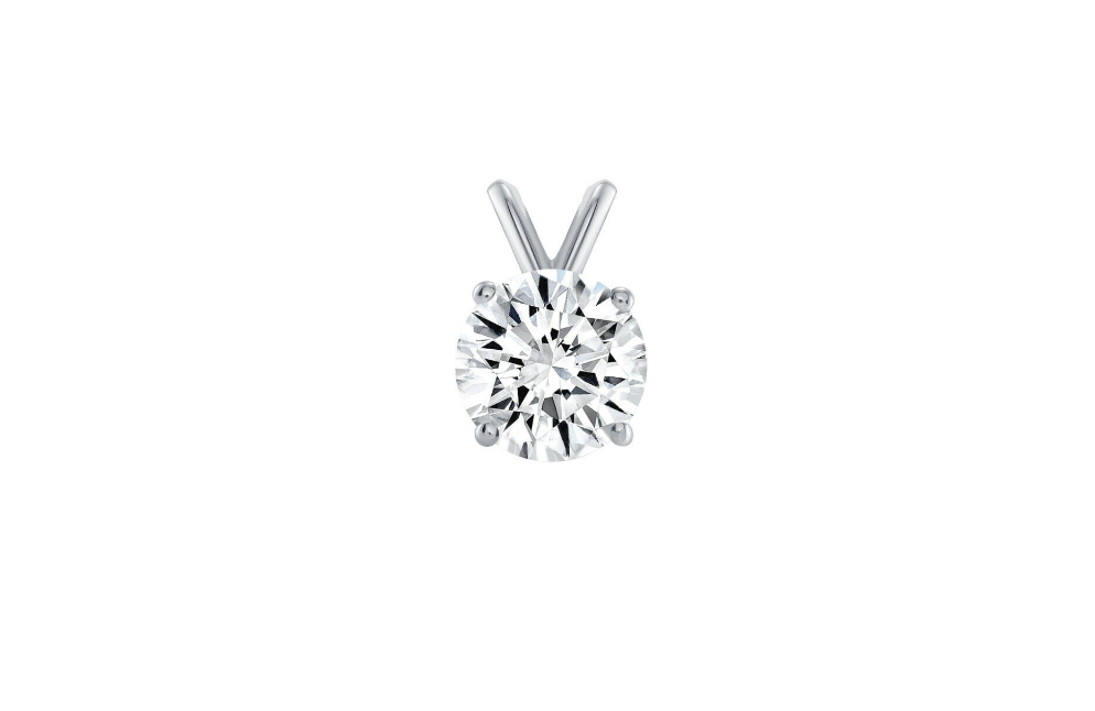 1.00 Carat Round Brilliant Cut Solitaire Pendant in a Solid 14k White Gold Basket Setting with a Solid 14k White Gold Box Chain