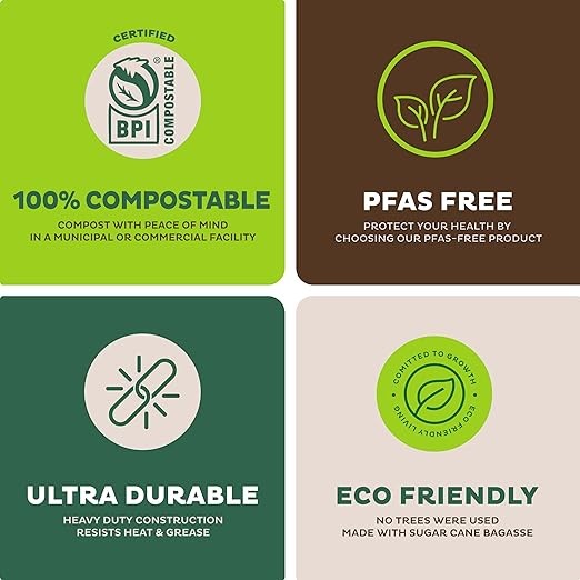 • BIODEGRADABLE CHAMPIONS: These BPI-certified 100% compostable all-stars aren't destined for the landfill. At a commercial compost facility, they'll return to nature in 90 days flat. Zero waste, maximum impact! We really love our planet and are committed to keeping it clean!