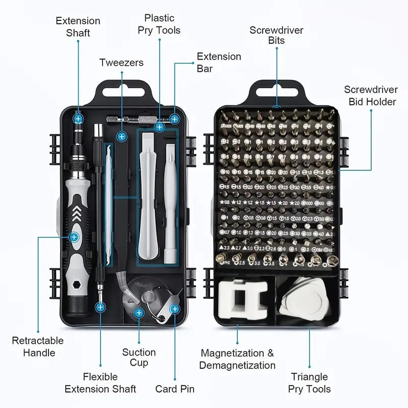 115pcs/set Cell Phone Kit / Car Precision Screwdriver Repair Tool Kit, Multi-function Electronic Screwdriver Set, Watch Mobile Phone Disassembly Repair Screwdriver Tools (Black)
