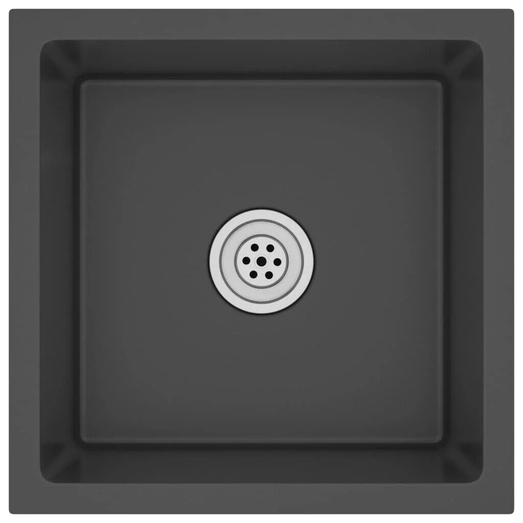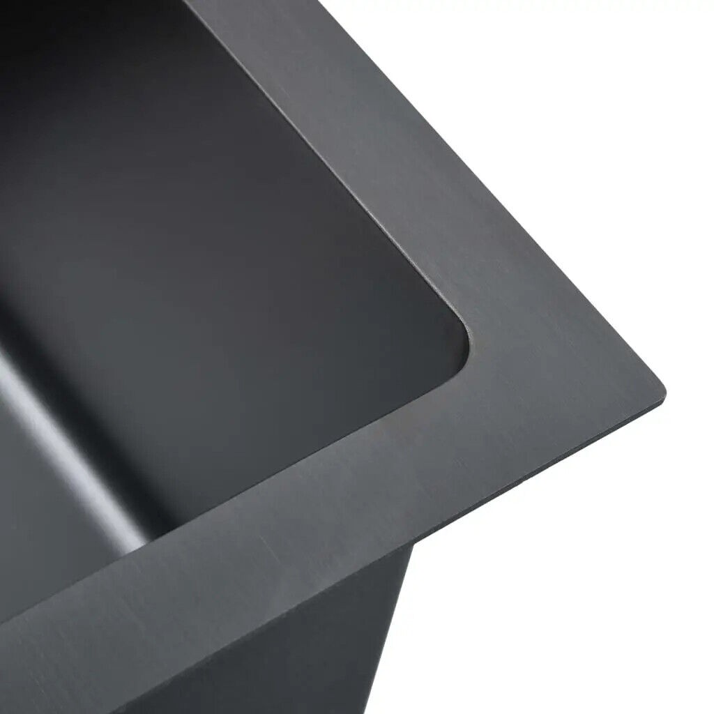 15.7" Handmade Kitchen Sink Undermount Drop-in Single Bowl Stainless Steel Black