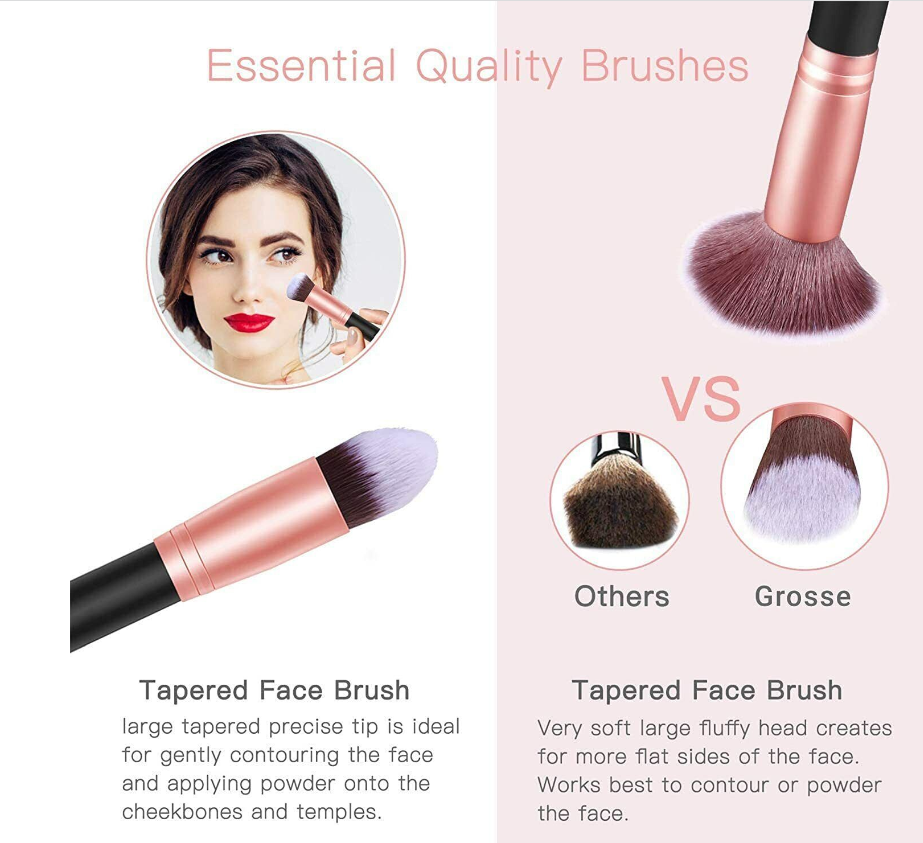 GROSSē 16 pieces makeup brushes set contains 6 basic bigger makeup brushes and 10 relatively smaller brushes, meeting nearly all demands for your fantasy looks. Featuring high-cost performance and high quality, makes it a bonus for every makeup enthusiast.