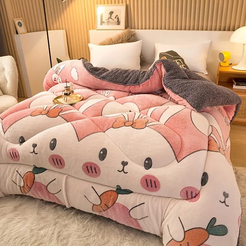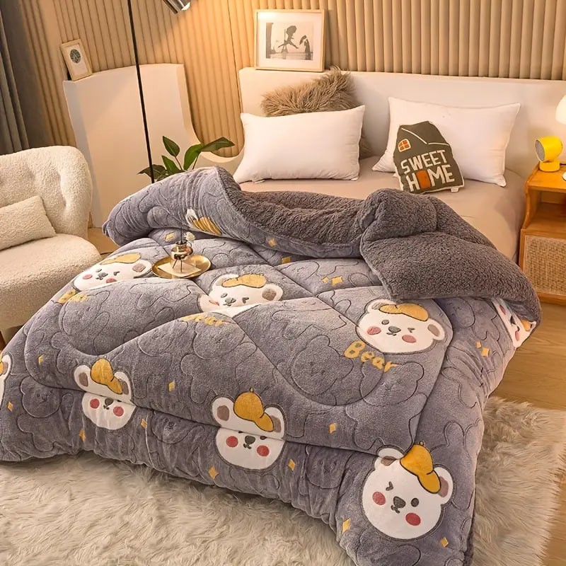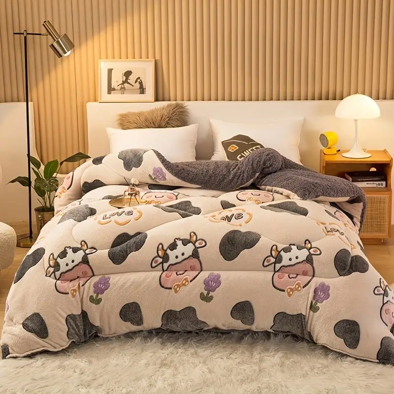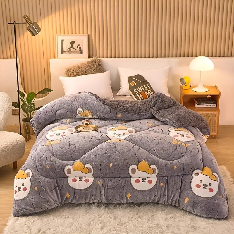 1pc Cute Print Thickened Comforter Insert - All Season Ultra Soft Breathable Velvet Comforter, Machine Washable Bedroom Warm Autumn And Winter Down Alternative Comforter