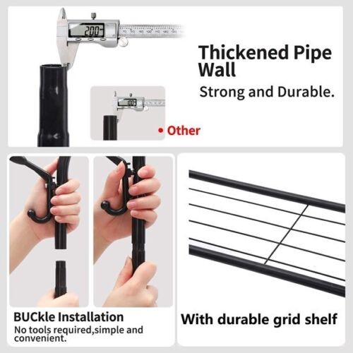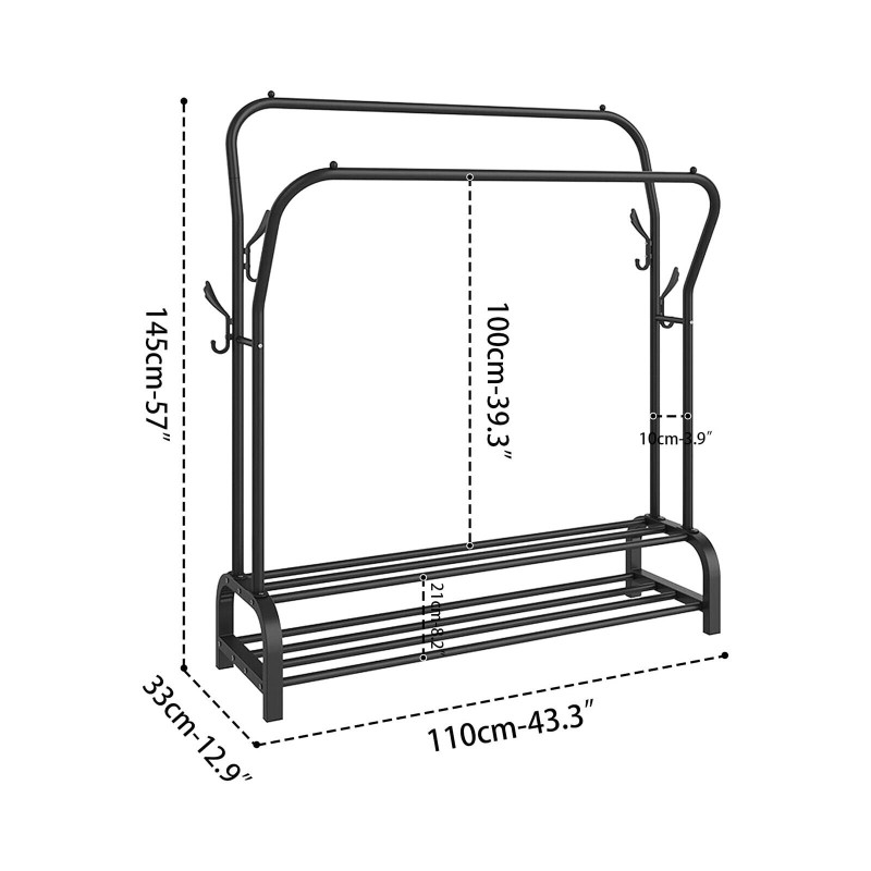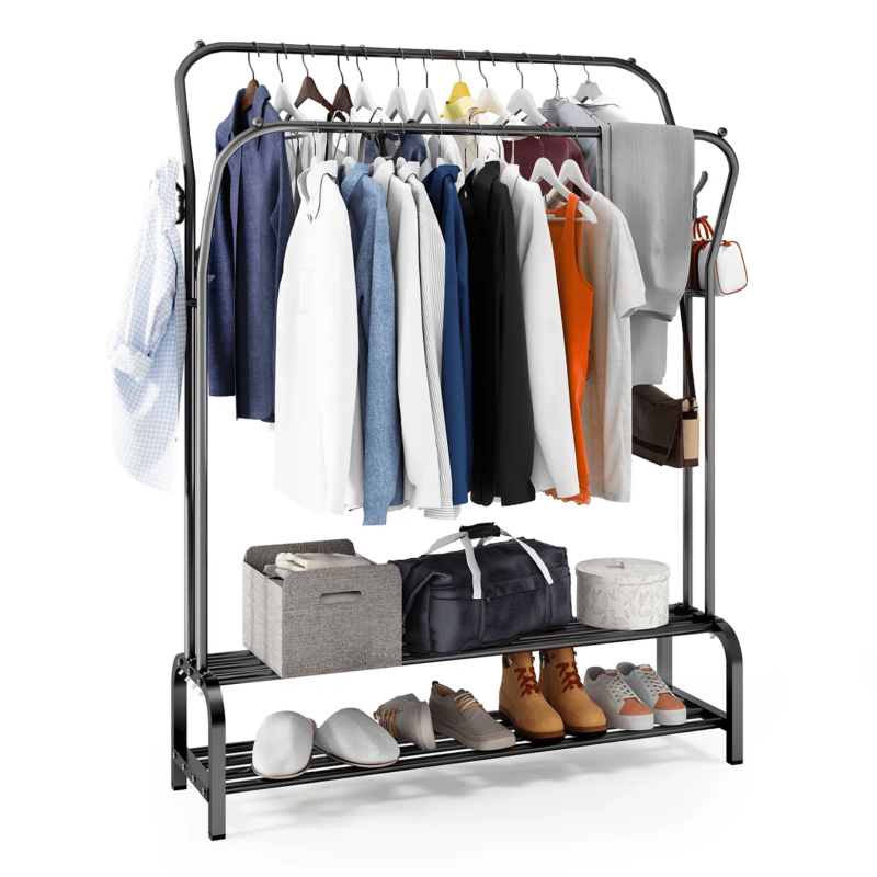 Adjustable, Double bottom shelves,Portable, Heavy Duty, 8 Hangers, 2 Shoe Shelves, Hanging, Large Capacity