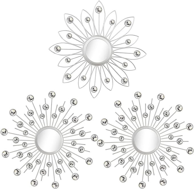 • 【CAPTIVATING FIND ON WALL】PACK OF 3. Measuring at 13.5" Diameter with silver metal frame and 4" Diameter for the mirror alone. These metal artpieces work great alone, or as a set with other multiple matching wall decors.