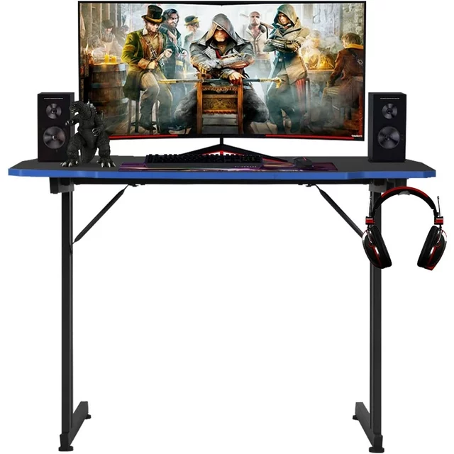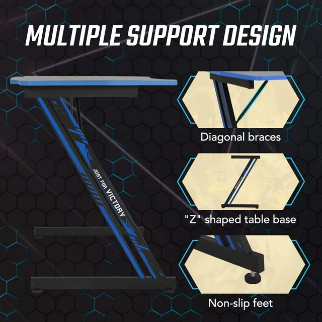 39 inch Z Shaped Ergonomic Gaming Desk PC Computer Desk with Headphone Hook for Game Players,Blue