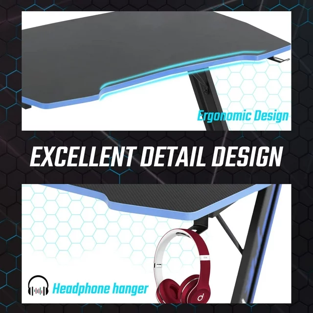 • Large Surface:This gaming desk workstation provides massive space for PC, gaming keyboards, gaming monitors and other gaming gear. Smooth carbon fiber texture surface for a comfortable gaming experience.