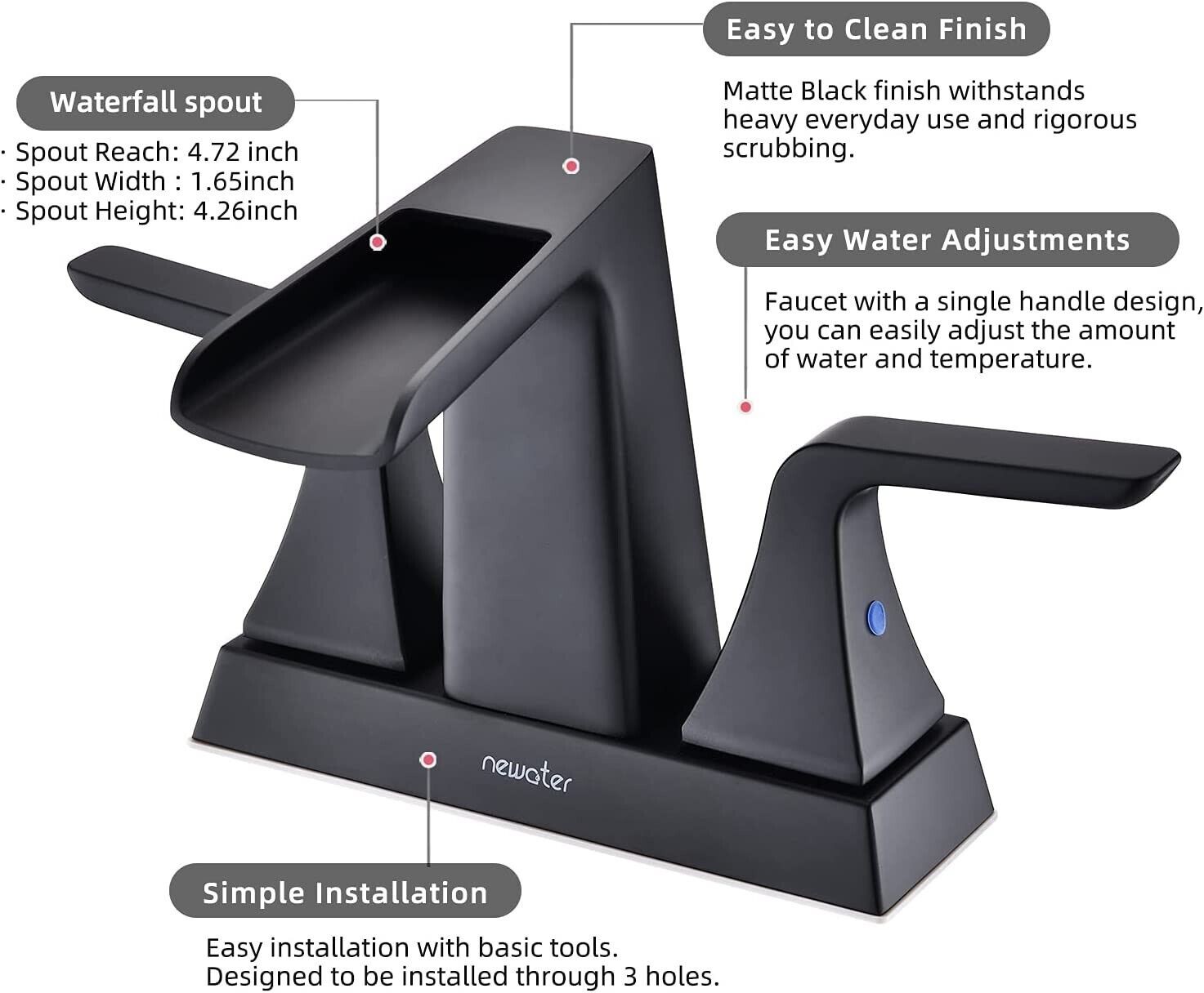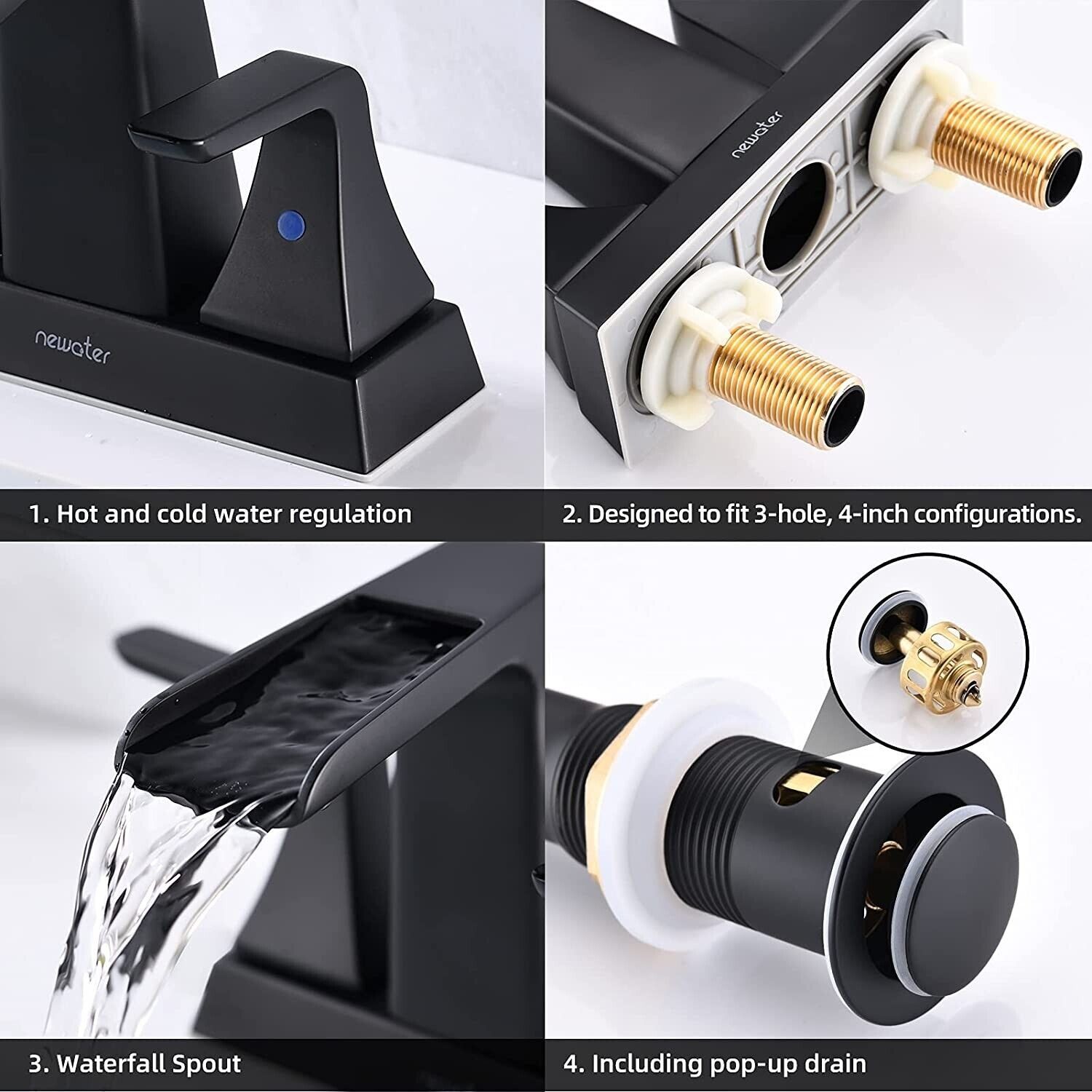 4 inch Centerset Bathroom faucet Matte Black 2-handle 3 Hole Basin Sink Mixer