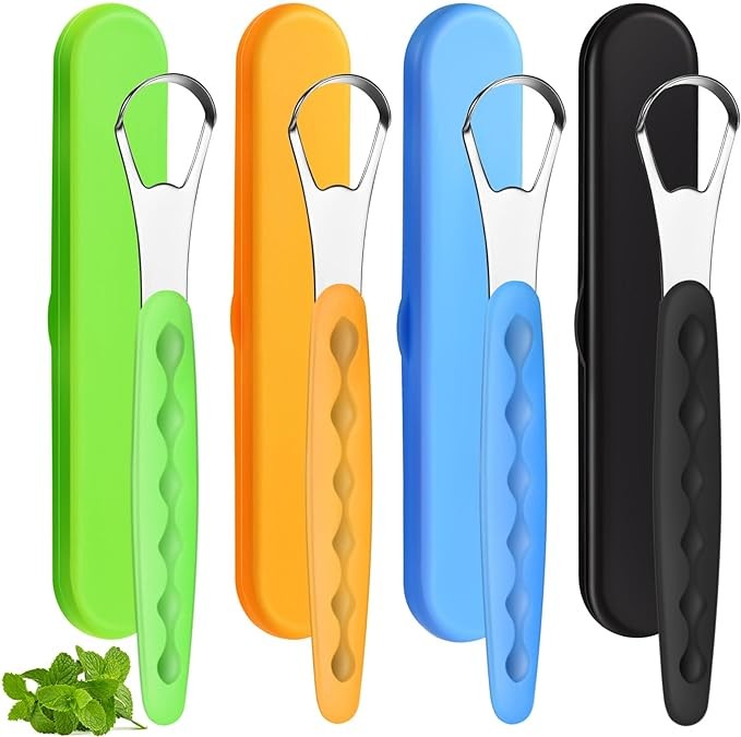 • What You Will Receive: the package contains 4 pieces of tongue scrapers in 4 colors, including orange, black, green and blue, avoiding confusion when family members use them, with 4 storage cases equipped for easy storage