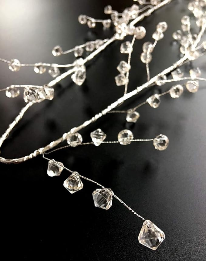 • ❥Crystal Beaded Garland Clear Diamond Branch Chandelier Twinkle Acrylic Ice Silver Wire String Wreath Party Decoration for Wedding DIY Craft Jewelry Making. Diamond pattern perfect for Event Decoration.