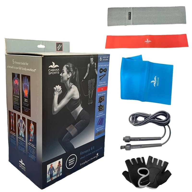 Resitance bands (latex and fabric), Jump Rope and fitness gloves