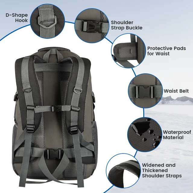 The flexible strap of hiking bag can be adjusted varied, you can freely adjust the shoulder straps according to your preferences. This hiking backpack is perfect for men and women.