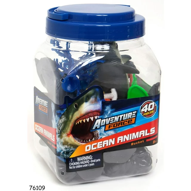 • Adventure Force 40-Piece Jumbo Bucket Play Set, Ocean Animals.