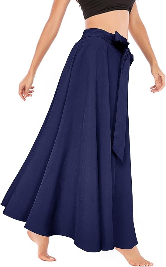 Afibi Women's High Waist Skirt Tie Front A-Line Flowy Long Maxi Skirts with Pockets