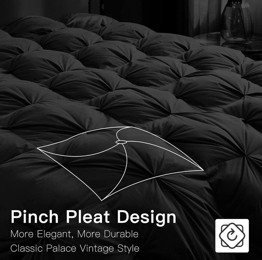 COZY ALL SEASON - Alanzimo all season feather down comforter with a unique vintage pinch pleated design, which brings you a comfortable sleep. It looks elegant and suits most room decorations. Queen 90x90inch, 56oz.