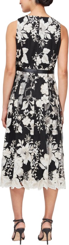 Alex Evenings Women's Sleeveless Midi Dress with Elegant Embroidery, Full Skirt and Tie Belt (Petite and Regular Sizes)