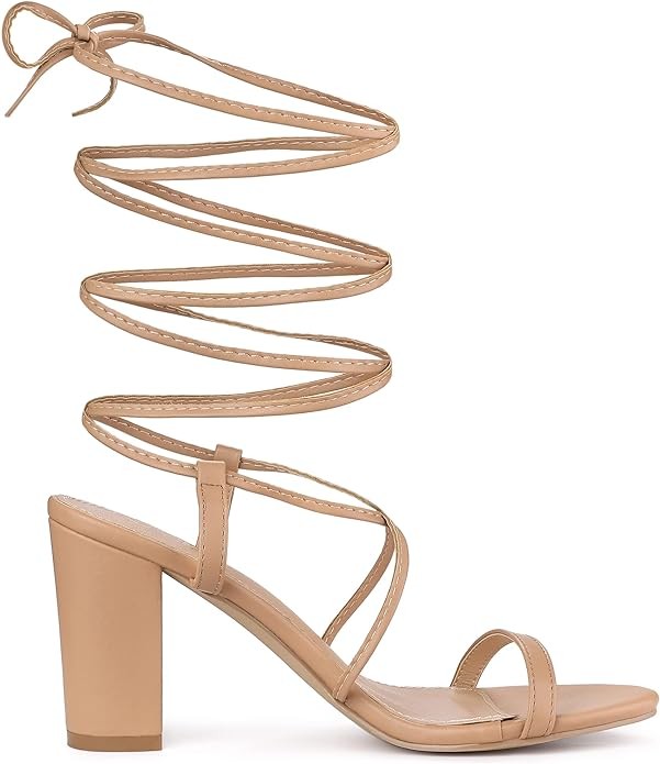 • Strappy, Block Sandals, Crisscross Strap, Open Toe, Lace Up