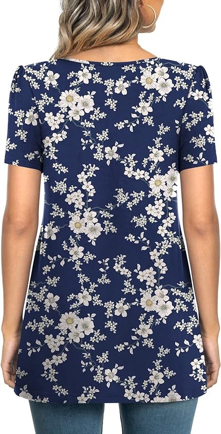 • 【Features】 Crew neck, short sleeve, pleated on the front, easy to cover your belly and back area. Loose and fitted, quick drying. A variety of different solid and floral print are available for you to choose from. It is perfect for all seasons.