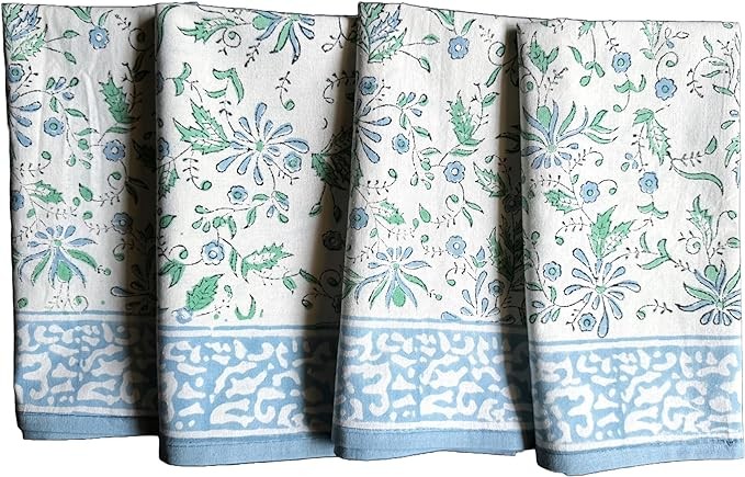 • QUALITY CRAFTSMANSHIP - HANDCRAFTED: Inspired by the influence of French Provencal art, these napkins feature a floral pattern; laboriously hand printed individually using the ancient tradition of hand block printing using intricately carved wooden blocks by skilled artisans in India. Each piece is truly a unique work of art crafted by the human hand. Each piece might have slight variations due to inherent nature of hand block print art which only adds to their beauty.