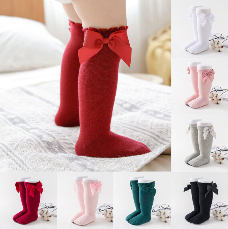 Baby Toddler Girl Knee High Long Socks Cotton Princess Bowknot Tights Stockings