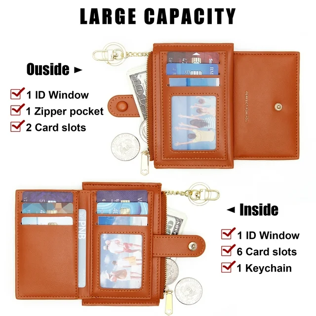 • Inner Structure:8 Slots for credit cards, bank cards, business cards,1 Zipper Pocket for coins, cash, tickets,2 ID Window for ID card, driver's license and 1 Keychain