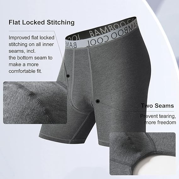 BAMBOO COOL Men’s Underwear Boxer Briefs 7-Pack Breathable and Soft with Fly Underwear for Men