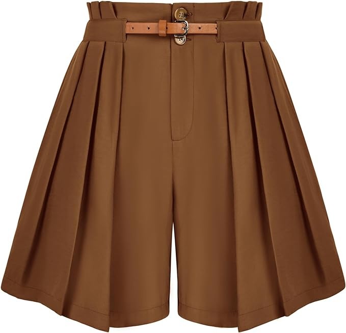 Belle Poque Women High Waisted Wide Leg Shorts Summer Beach Shorts with Pockets & Belts