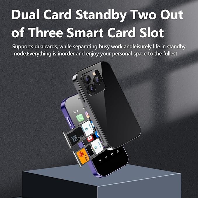 • Tiny But Functional Smartphone: Mini cell phone size (94*47.4*12.5 mm with 3.0 Inch HD Screen), this smartphone doesn't compromise on functionality. It's equipped for voice and video calls, photography, emails, music, FM radio, GPS navigation, and more, making it incredibly portable and convenient