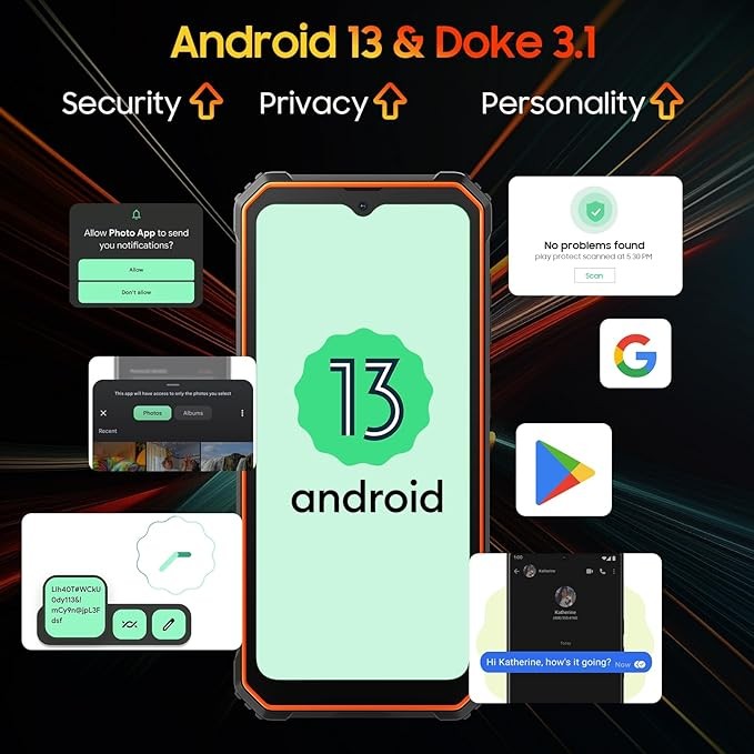 • ✅【The Latest Android 13 & Doke OS 3.1 System】✅ The BV4800 rugged smartphone unlocked come equipped with the latest Android 13 operating system, enhancing privacy and personalization for a seamless work and play experience. This Android 13 android phones offers per-app language preferences, a data migration assistant, cleared clipboard history, and notification permissions. There's more! With the Doke OS 3.1 integration, enjoy additional functionalities like call recording and exercise index tracking.Additionally, explore easy sharing, real-time subtitles, and more exciting features and optimizations!