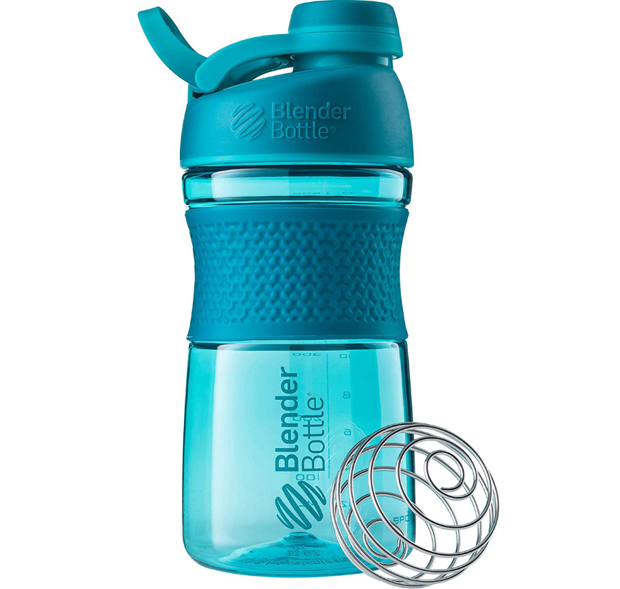The Blender Bottle SportMixer Twist Cap 20 oz. Tritan Grip Shaker delivers easy versatility in a sleek, streamlined package. This hybrid bottle is a perfect hydration companion, and a premium mixer for your next protein shake. Features include a secure twist-on lid, a foldaway loop for portability without bulk, and a firm, feel-good textured grip.
