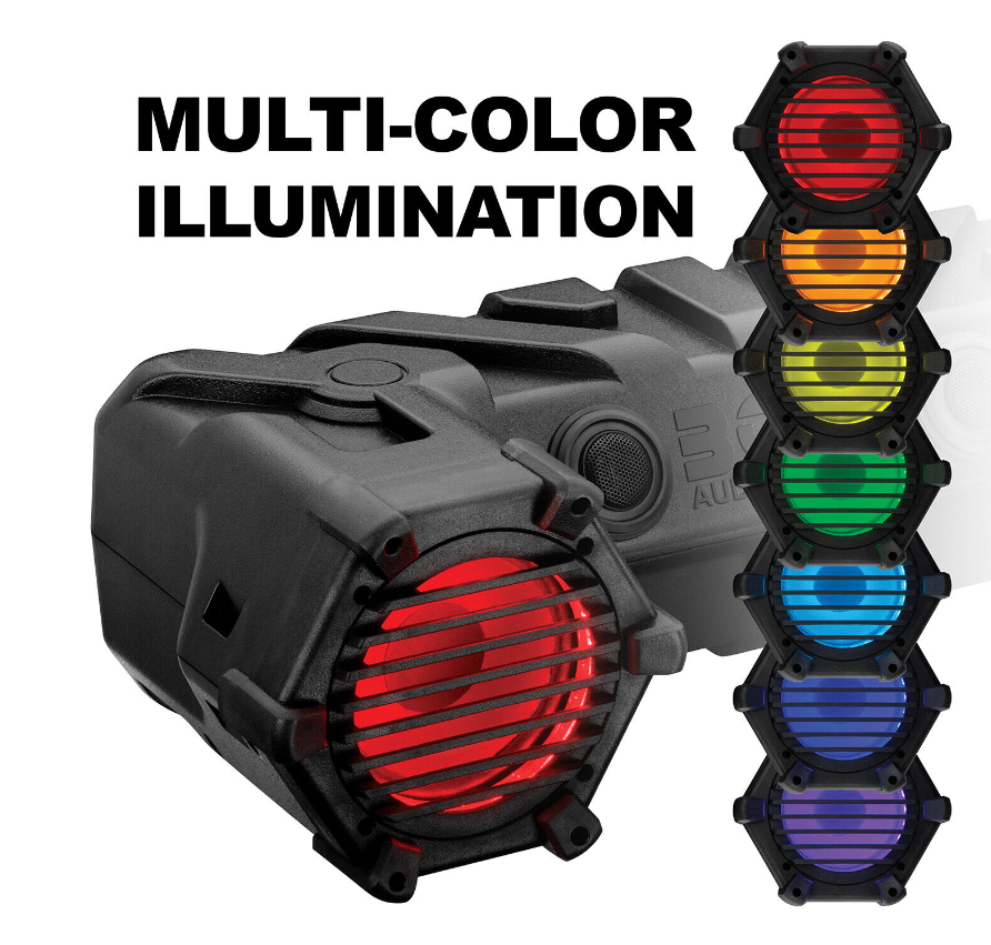 Take your music on the trails, tailgating or camping with the BOSS Audio Systems ATV30BRGB weatherproof powersports plug and play system.