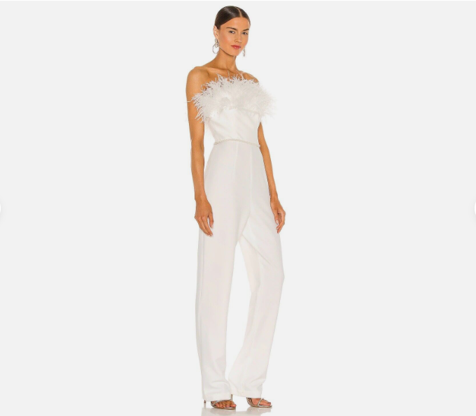 BRONX AND BANCO Revolve Lola Blanc Feather Jumpsuit Wedding Size S / 4 *NEW*