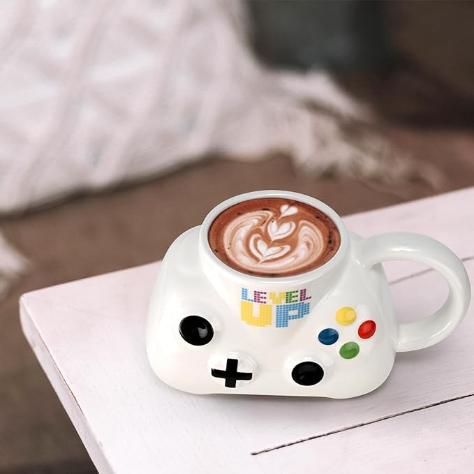 • UNIQUE DESIGN IN THE SHAPE OF GAMEPAD: Our gamer mug is a replica of real gamepad, only the handle on the side tells people it is a coffee mug. “Level Up” is also printed on the mug, good meaning for those who play video games.