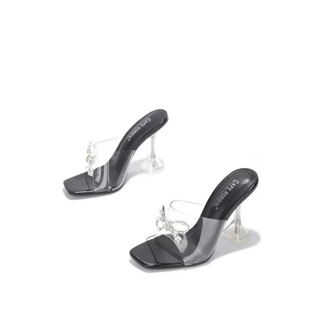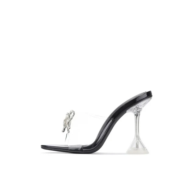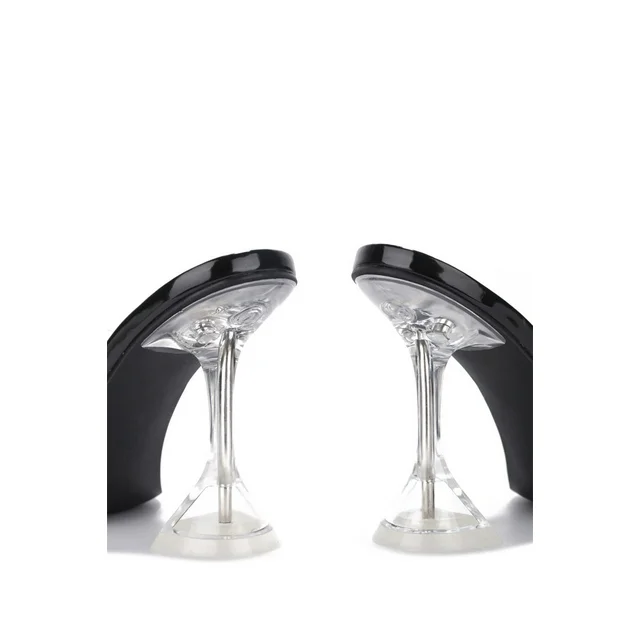 Cape Robbin Black Bad Guy Black Crystal Clear Open Toe High Heel Mule Pumps (10, BLACK)