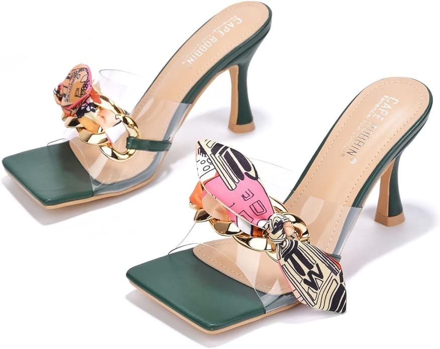 Cape Robbin Concur Sexy Stiletto High Heels for Women, Transparent Square Open Toe Shoes Heels with Bow