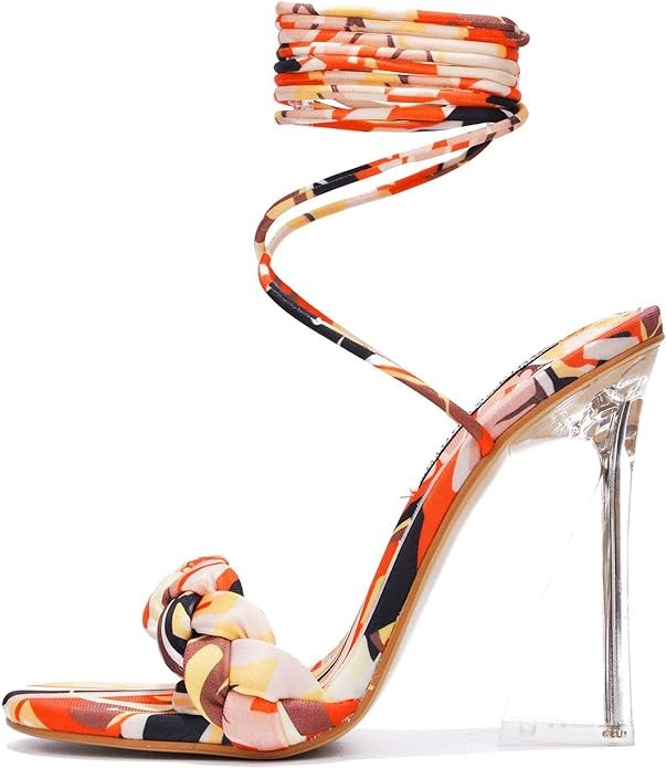 Cape Robbin Tracy Lace Up Sexy Clear High Heels for Women, Women's Transparent Braided Open Almond Toe Heels