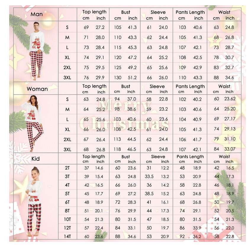 *The pattern of letter printed on tops and Christmas printing pants are suitable for family,fit for women,men,kids,toddlers,infants,babies.