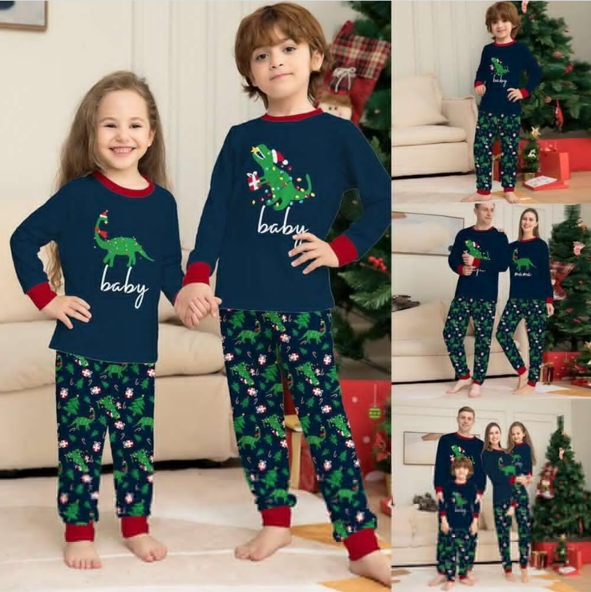 Christmas Pyjamas Xmas PJs Family Matching Adults Kids Dinosaurs Nightwear Set