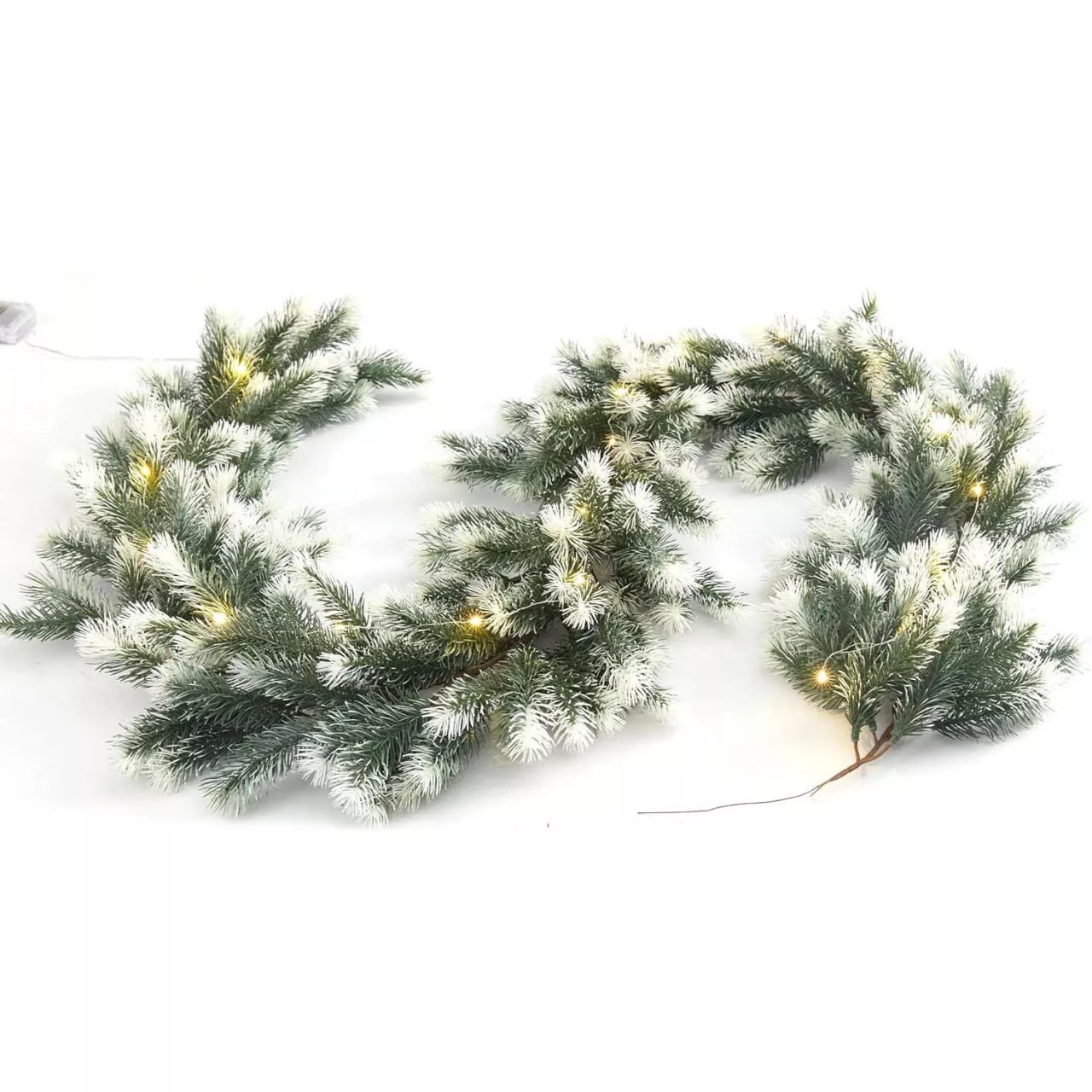 Christmas White Green Garland with Lights Holiday Decorations Garland Wreath