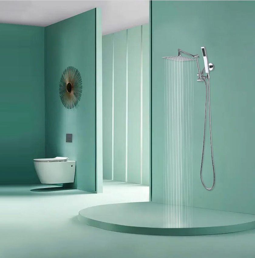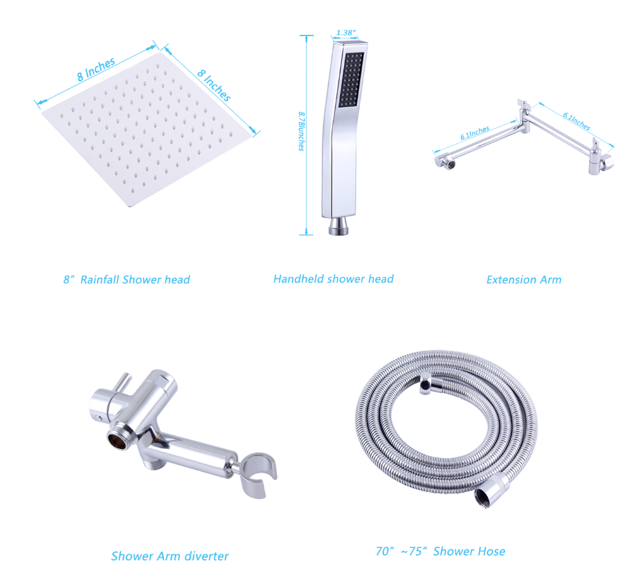 • 8 INCH HIGH-PRESSURE RAIN SHOWER HEAD: Made of all Stainless Steel no rust and no leak; Self-clean silicone nozzles for superior water flow coverage; Ultra-thin design and advanced air booster technology for high-pressure water flow, provides superior rain shower experience.