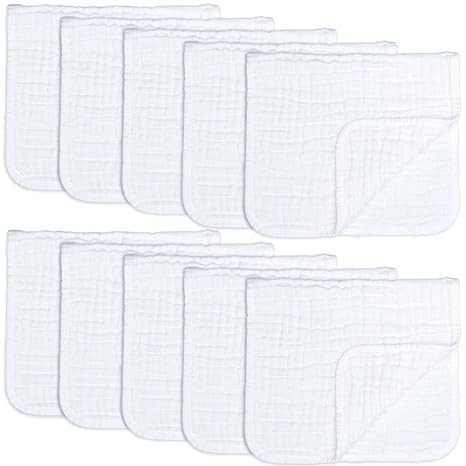 Comfy Cubs Muslin Burp Cloths Large 100% Cotton Hand Washcloths for Babies, Baby Essentials 6 Layers Extra Absorbent and Soft Boys & Girls Rags for Newborn Registry (White, 10-Pack, 20" X10")