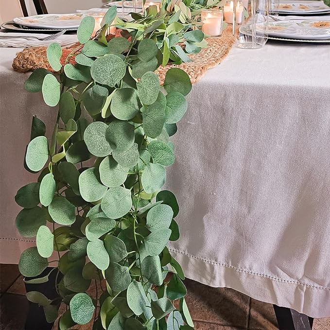 CQURE 48Pcs Eucalyptus Garland,Artificial Eucalyptus Leaves Table Greenery Garland Wreath Vines for Wedding Party Table Bedroom Wall Room Decor