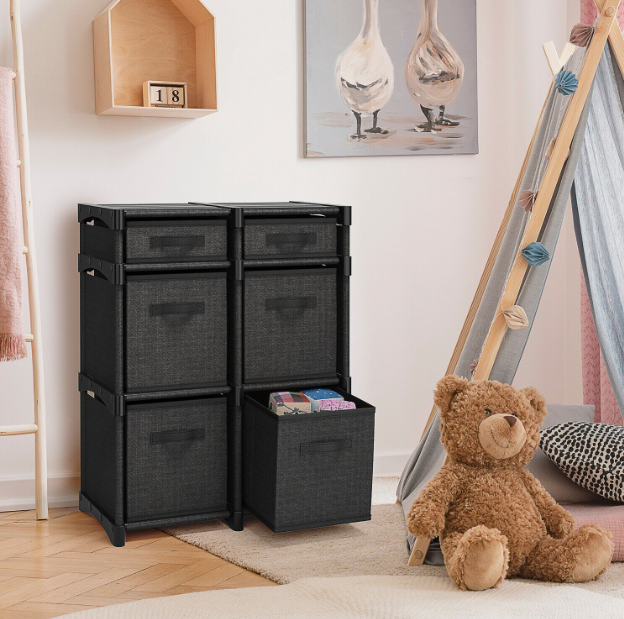 Adaptable Storage: Set up the shelf layout to suit your needs, with the smaller bins arranged at the top, middle, or bottom. Great for toy storage, craft storage, clothes storage, and closet organization.
