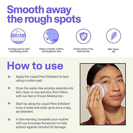 Curology Liquid Pore Exfoliant, 2% BHA Salicylic Acid, 8% AHA/PHA Lactic Acid, and 1% Zinc PCA, Brightening and Exfoliating Facial Skin Care, 4 fl oz