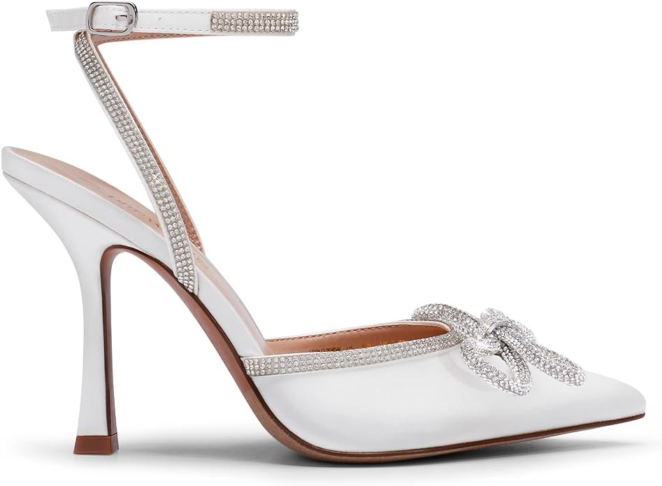 • Heels with Svelte Strap: 4.4 inch high heels design with rhinestone embellished ankle strap, feature elegantly with a wrap-around style which adds a sparkly flair to any outfit