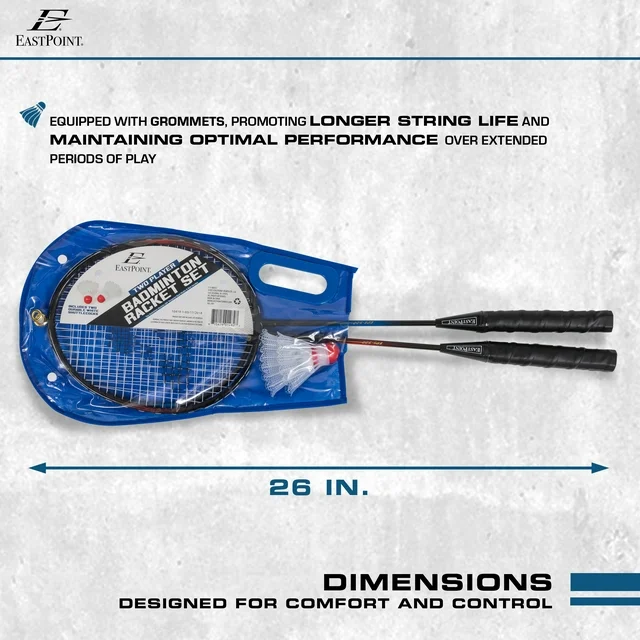 • Enhanced Racket Design: The 26” long EastPoint rackets are equipped with grommets, promoting longer string life and maintaining optimal performance over extended periods of play.