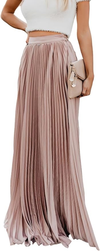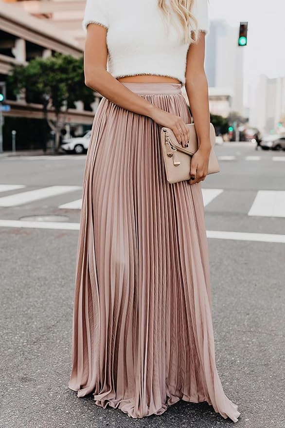 ebossy Women's High Waist Flowy Pleated Chiffon Maxi Skirt