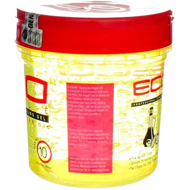 Eco Style Moroccan Argan Oil styling gel is formulated with rare oils from the Argan tree in Morocco. Our Morrocan argan hair oil formula conditions to tame frizzy hair, while adding brilliant shine and UV protection. Like all of ours styling gels, it is weightless and provides a superior hold. It works to layer and seal the hair shaft to maintain moisture and brilliance to your tresses.