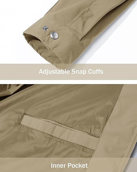 • Design: This lightweight jacket has a laydown collar and snap button cuffs, with an elastic hem for comfy wearing.