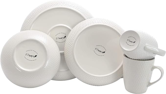 Elama Round Stoneware Luxurious Mellow Dinnerware Dish Set, 16 Piece, Speckle Powder Blue and White
