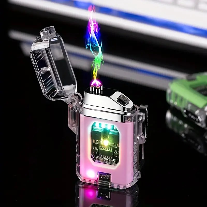 Electronic Pulse Rechargeable Lighter With Flashlight, Portable Double-arc Cigarette Lighter, Christmas Gift Birthday Gift